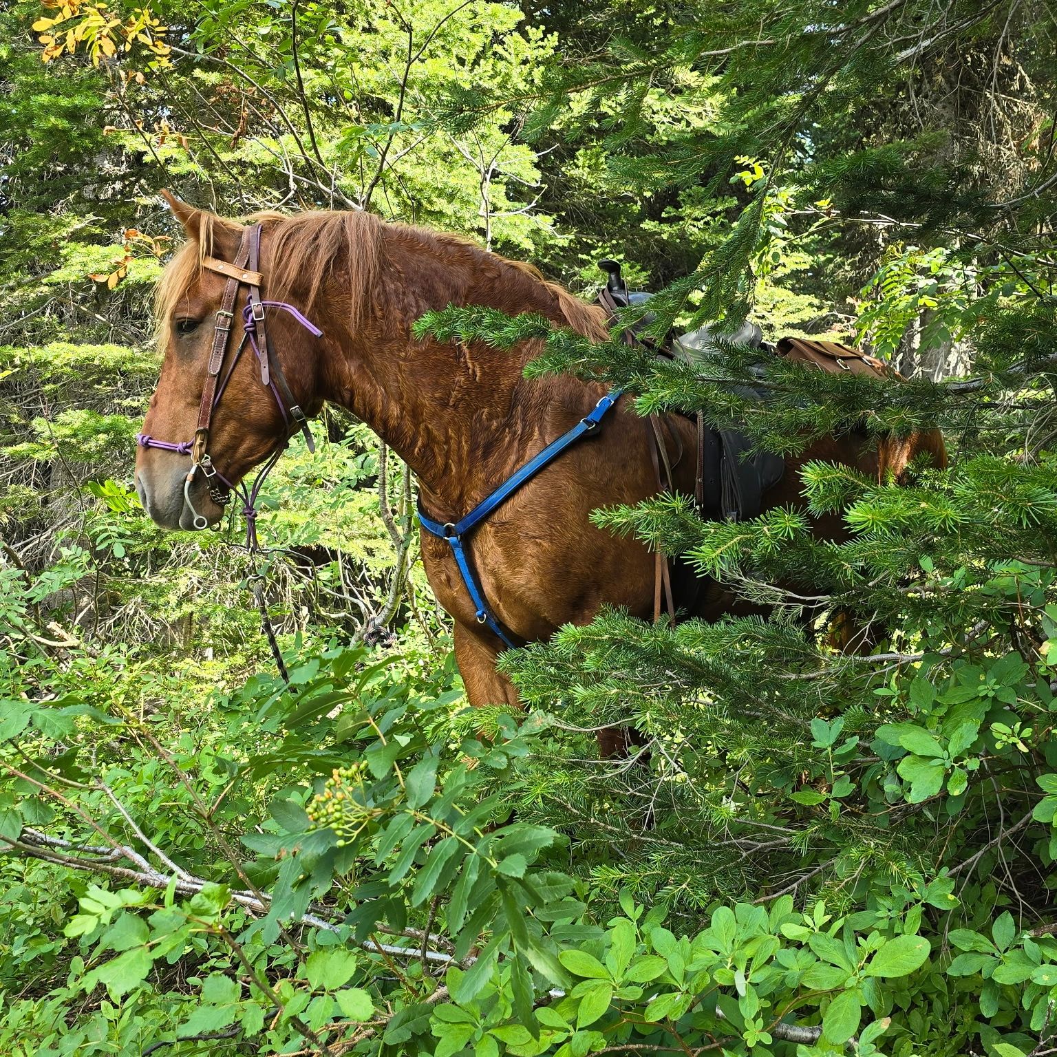 There are packs on the saddles so please bring water, light jacket or rain gear, snacks and cameras are welcome. Wear sun protection. Even on the hottest days our ride goes through lots of shade, when we do come out in the sunshine, we are rather high in altitude and there is a breeze.