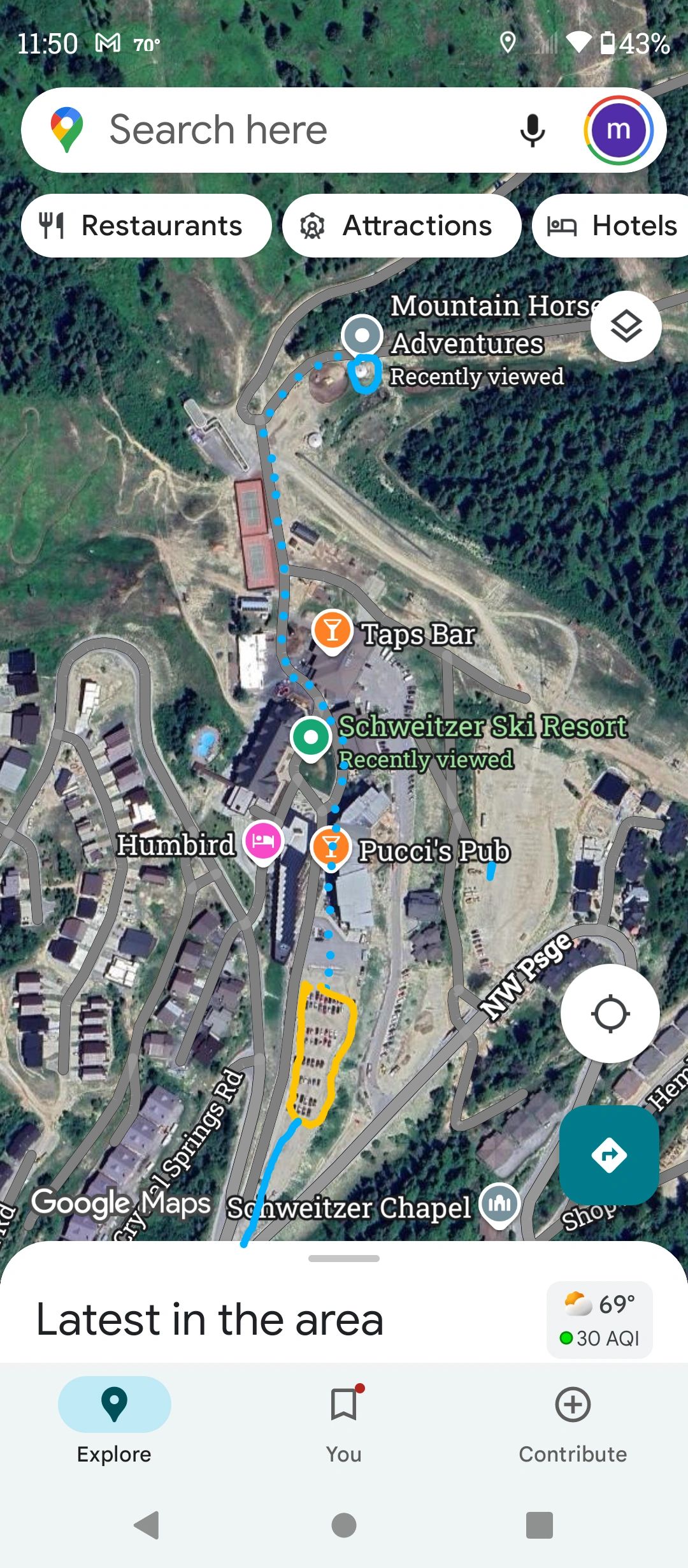 From Sandpoint hwy 95 north. Left onto Schweitzer cut off, go 1/2 mile. Right on Bronx Rd, go 1 mile. Left on Schweitzer Mountain Rd. Go 9 miles to resort. Middle lane will take you to Lakeview parking lot or Village lane. Walk through the village to the far side. Horse corrals are past the last chairlift. Check in at the yurt near the corrals.